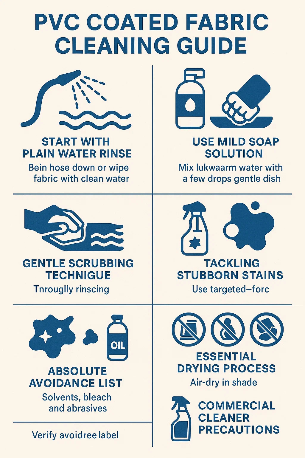 إليك دليل عملي للتنظيف الأقمشة المطلية بالـ PVC على أساس الخبرة المشتركة والرعاية المادية: