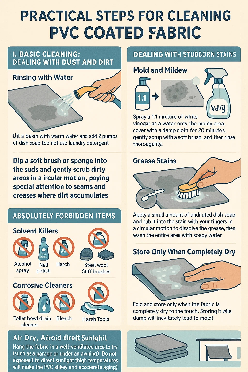 فيما يلي خطوات عملية للتنظيف قماش مطلي بمادة PVC :